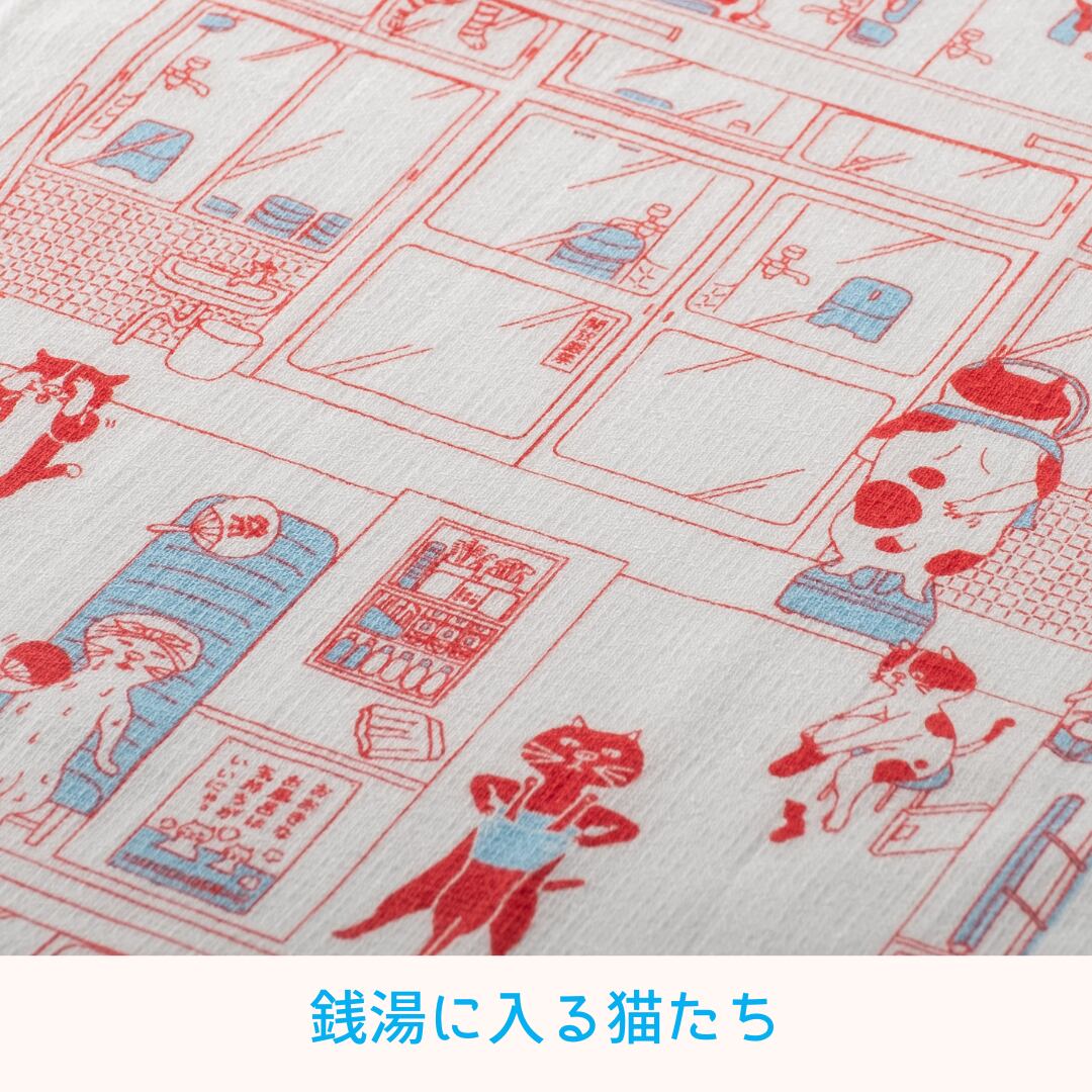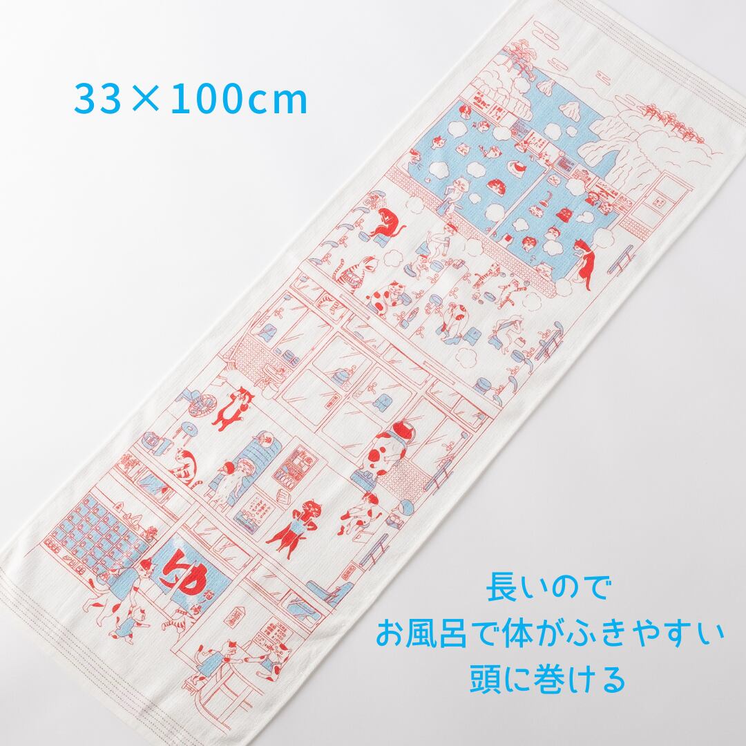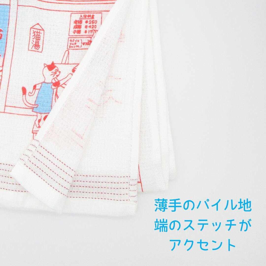 タオルてぬぐい「うすい かるい ながい 猫ノ湯」国産 今治タオル