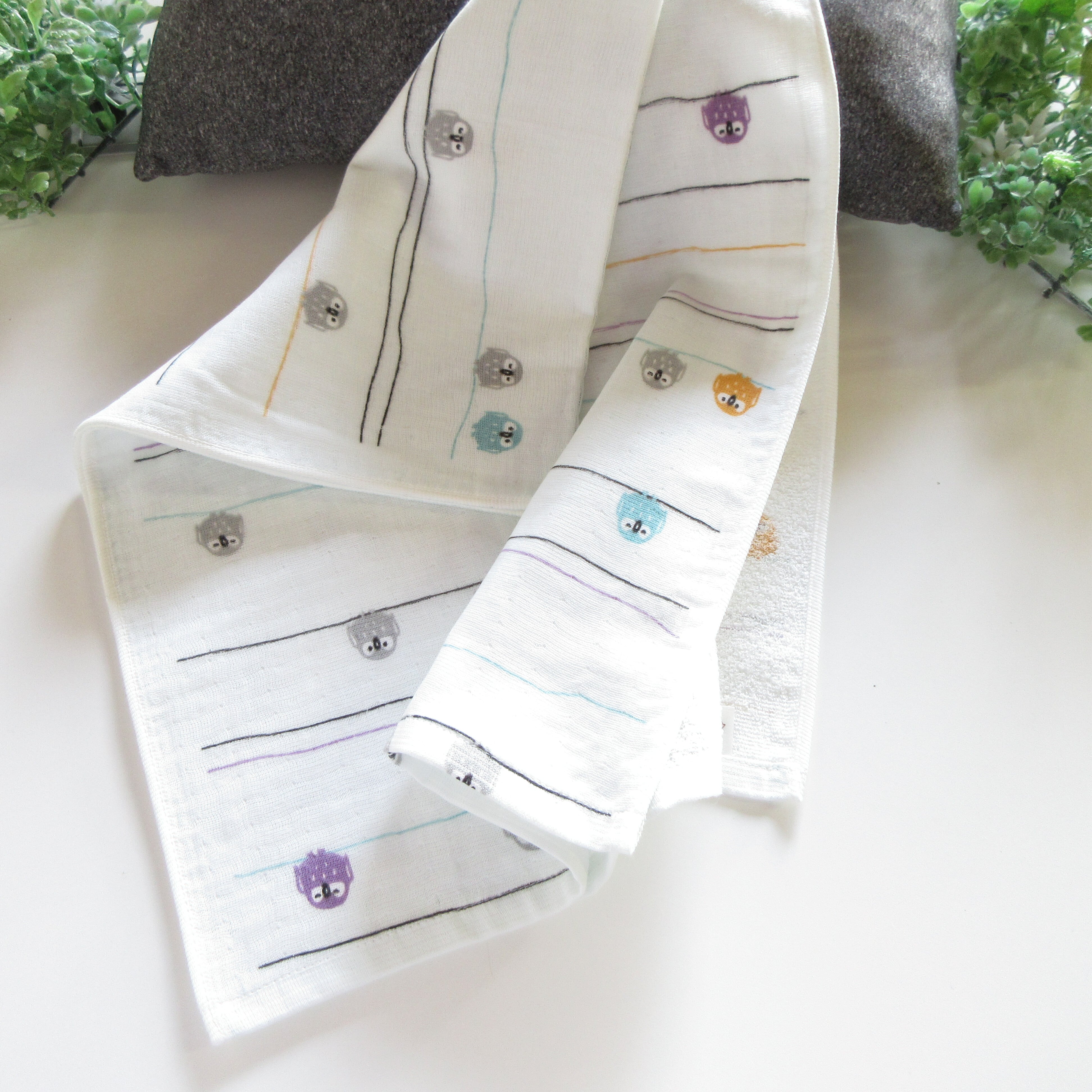 やわらかガーゼのタオル 福ふくろう 日本製 パイル フェイスタオル