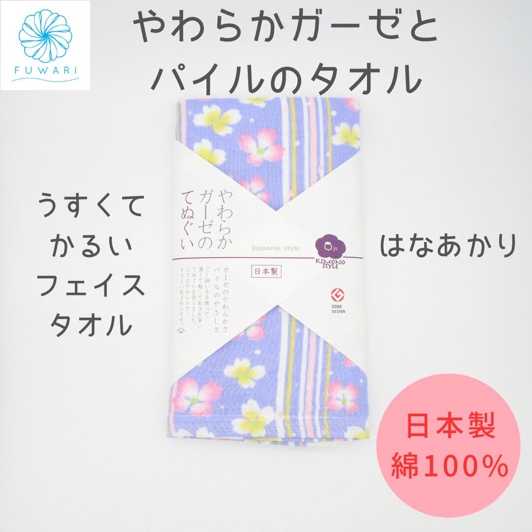 やわらかガーゼのてぬぐいタオル はなあかり 国産 日本製 フェイスタオル 柔らかい やわらかい うすい ジャパニーズスタイル 和 日本タオル 今治産 プリントタオル グッドデザイン賞受賞