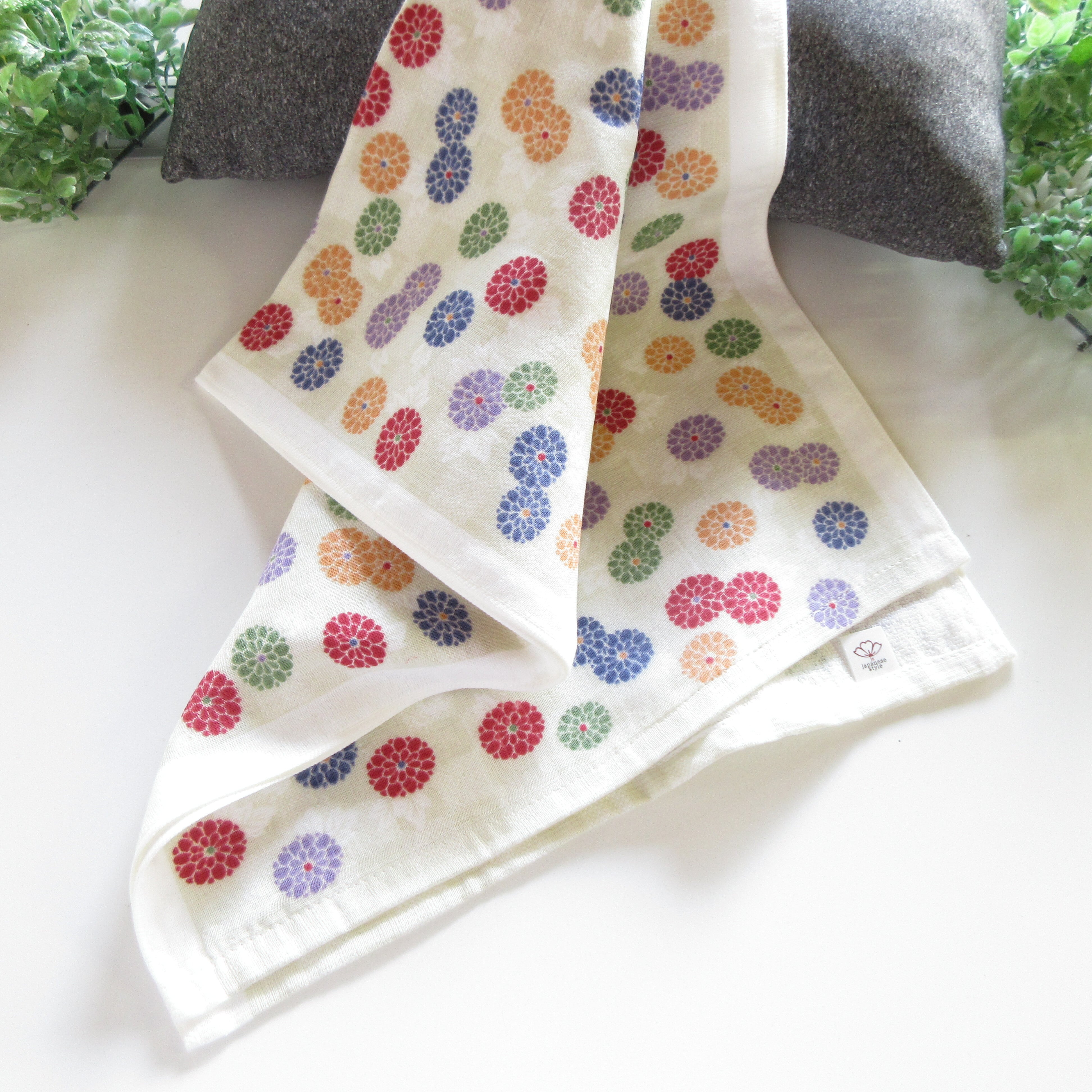 やわらかガーゼのてぬぐいタオル 小紋菊 国産 日本製 フェイスタオル 柔らかい やわらかい うすい ジャパニーズスタイル 和 日本タオル 今治産 プリントタオル グッドデザイン賞受賞