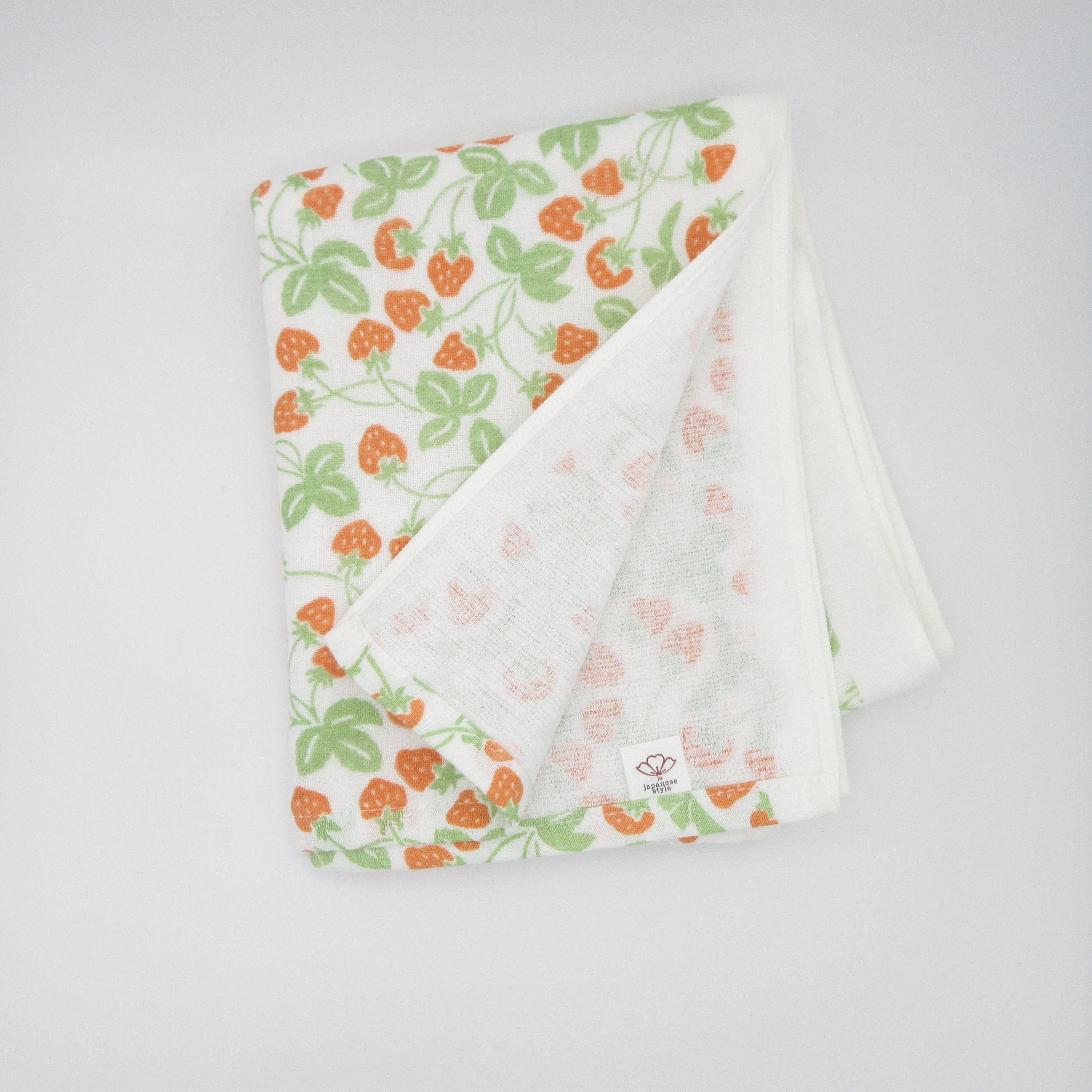 やわらかガーゼのてぬぐいタオル いちご畑 国産 日本製 フェイスタオル 柔らかい やわらかい うすい ジャパニーズスタイル 和 日本タオル 今治産 プリントタオル グッドデザイン賞受賞